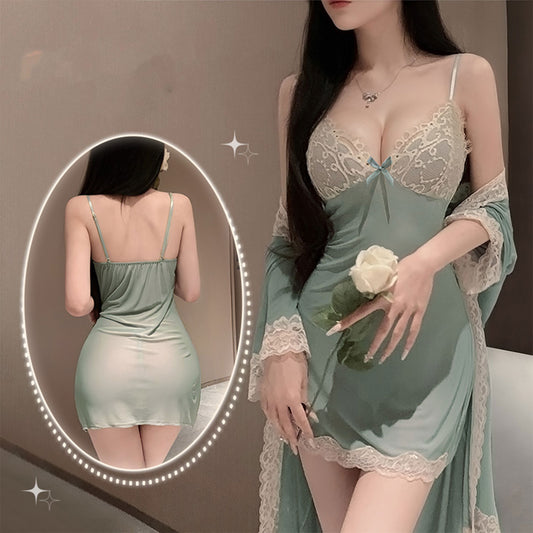 Fee Et Moi - Delicate Lace Slip Dress and Sheer Robe Set