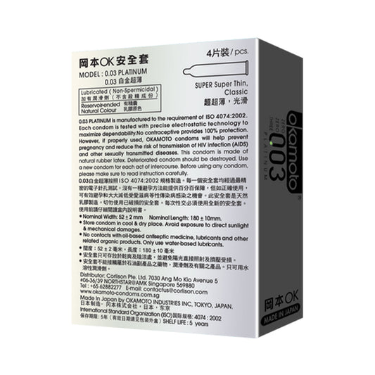 Okamoto - 003 Zero Zero Three Platinum Condoms Box of 4