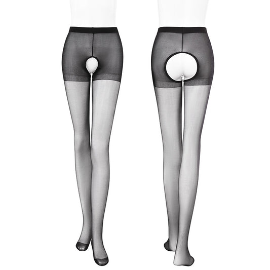 Fee Et Moi - Seductive Black Sheer Crotchless Pantyhose Plus Size