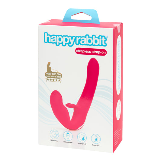 Happy Rabbit - Rechargeable Vibrating Strapless Strap On (Pink)