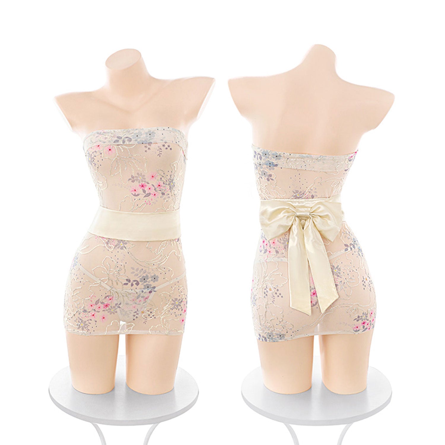 A wide satin waistband beautifully accentuates the waist, while the striking satin bow at the back adds a sweet, eye-catching finish. With its body-hugging fit and flirtatious mini length, this dress is perfect for intimate moments, playful nights, or anytime you want to feel irresistibly feminine.