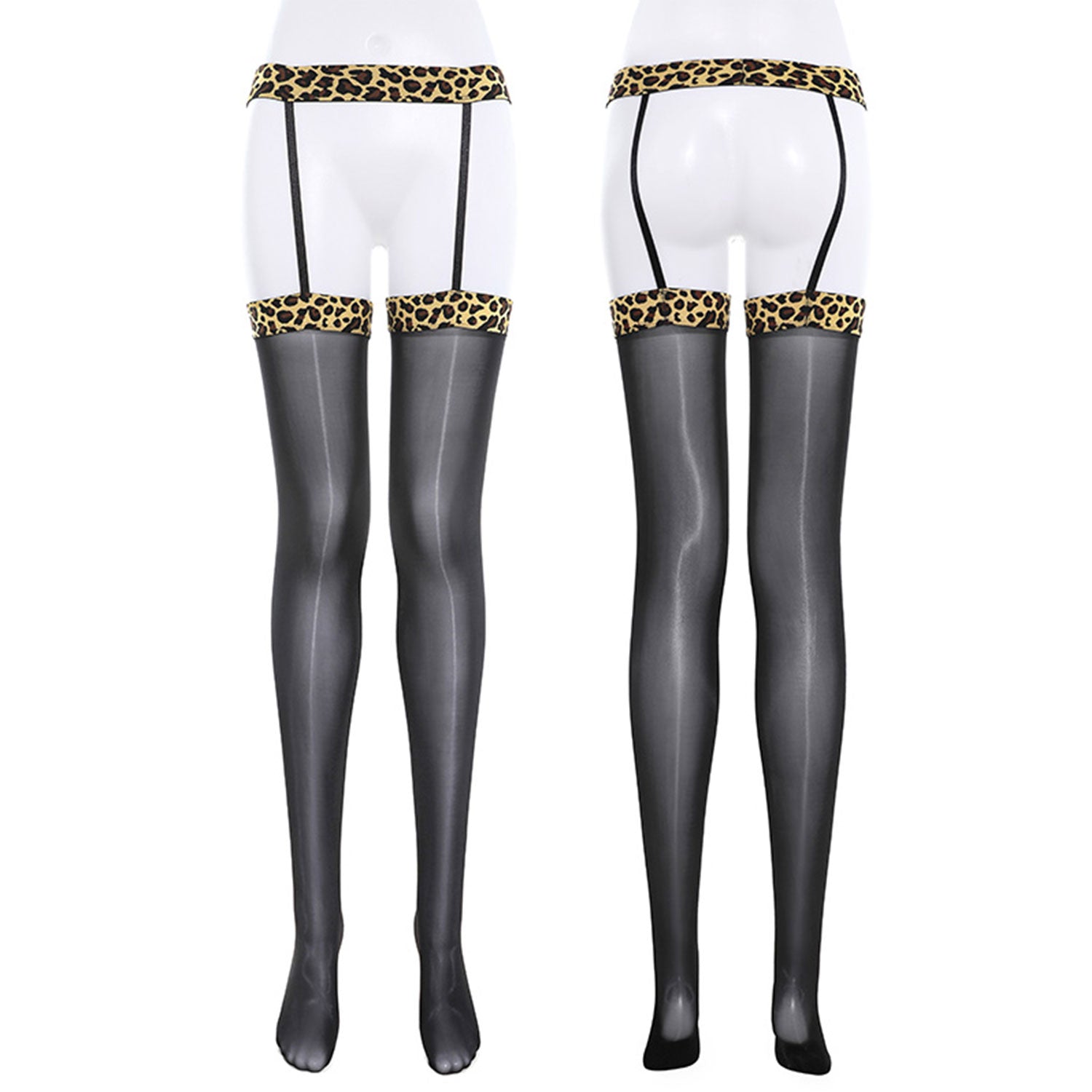 - Leopard Trim Sheer Thigh-High Stockings with Garter Belt