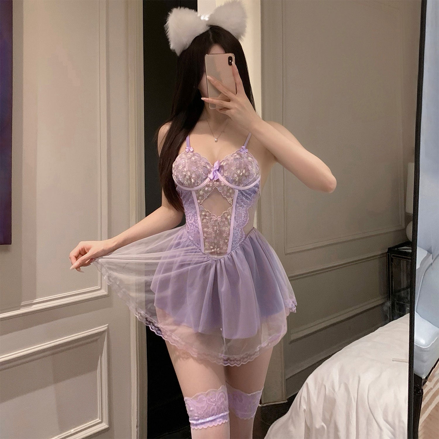- 1 × Purple Dream Lace Mesh Babydoll Dress