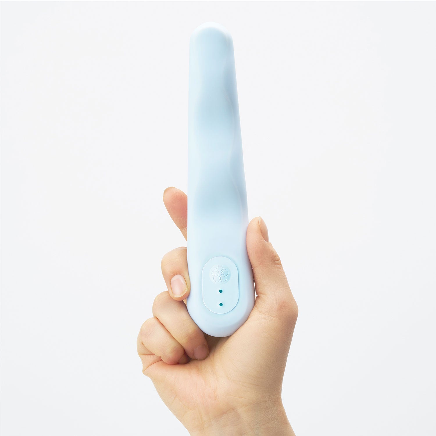 Experience a new level of pleasure with the Iroha - Fit Minamo Cool Blue Rechargeable G Spot Massager. Made with iroha's Soft Touch material, it's softer than any other product on the market for a gentle touch. Its curvy, wave-shaped design offers subtle, undulating sensations for maximum satisfaction.