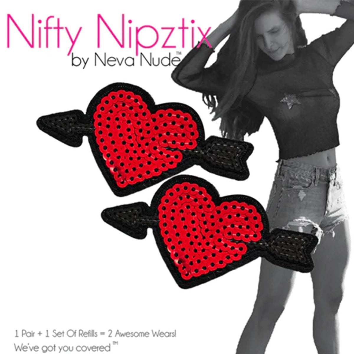 Neva Nude - Cupid's Arrow Heart Sequin Nifty Nipztix Nipple Cover Pasties 2 Wears (Red)