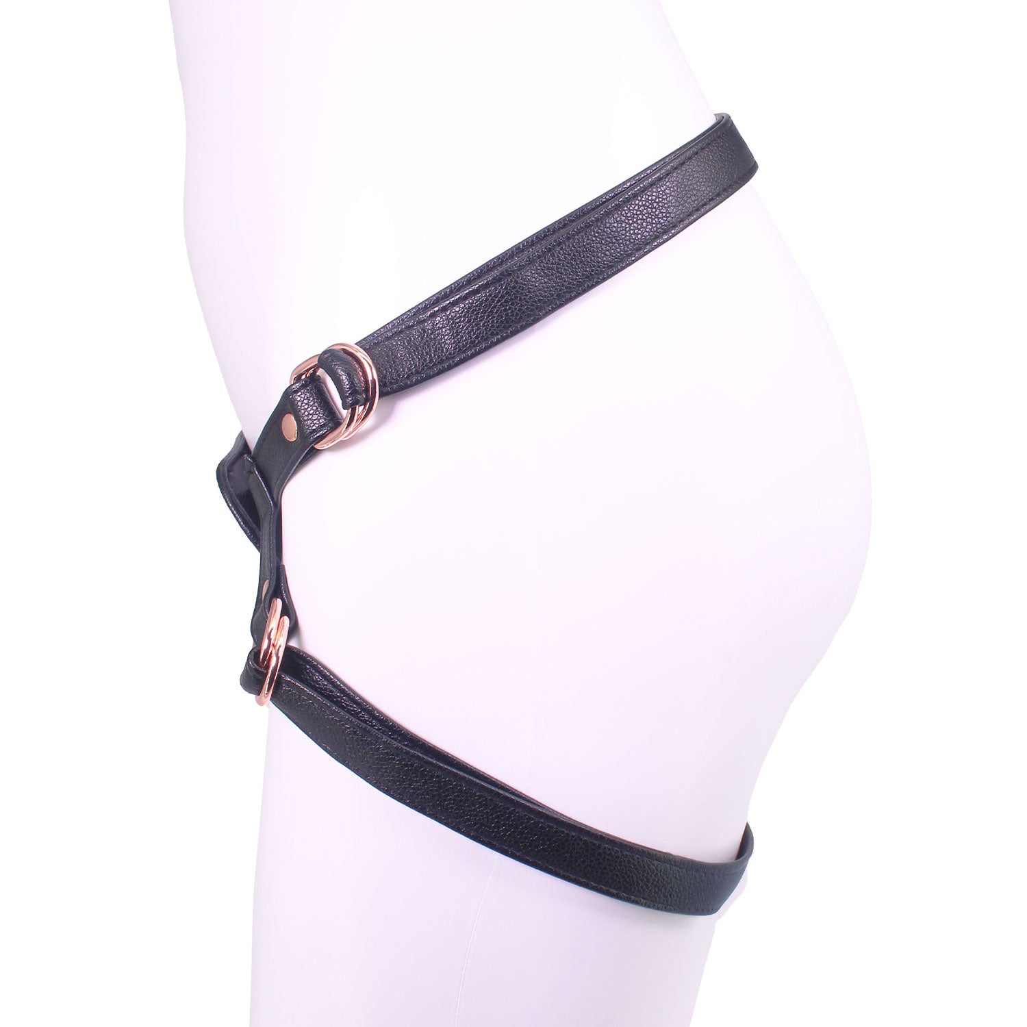 Unicorn Collections - Black and Rose Gold PU Leather Strap-On Harness